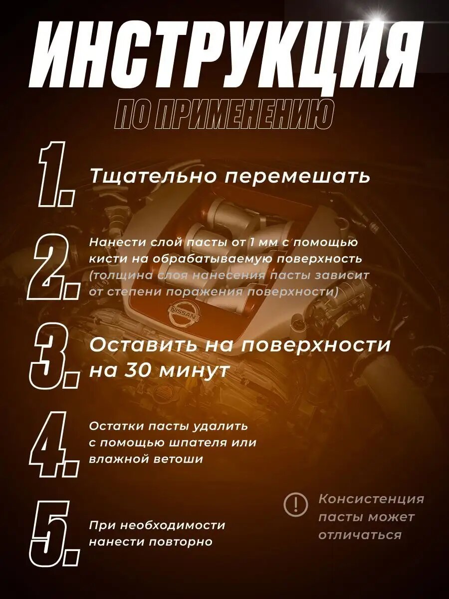 | Отзыв: | Внимательно читайте инструкцию и все будет хорошо. Намазал небольшой кусок где была ржавчина и через 30 минут смыл , как будто и не было ржавчины (голый метал ) |