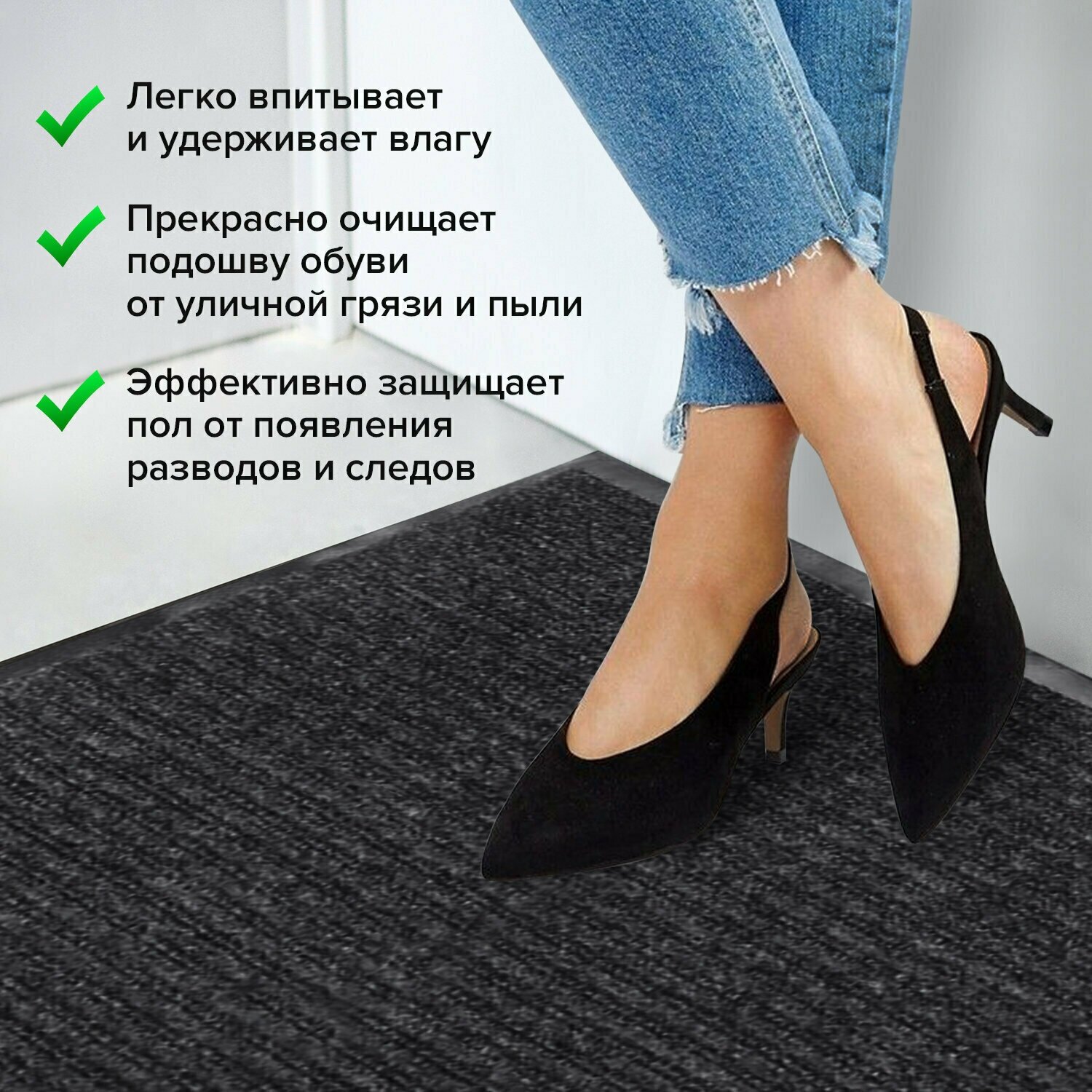 Коврик входной Лайма ворсовый влаго-грязезащитный, 60х90 см, ребристый, толщина 7 мм, черный
