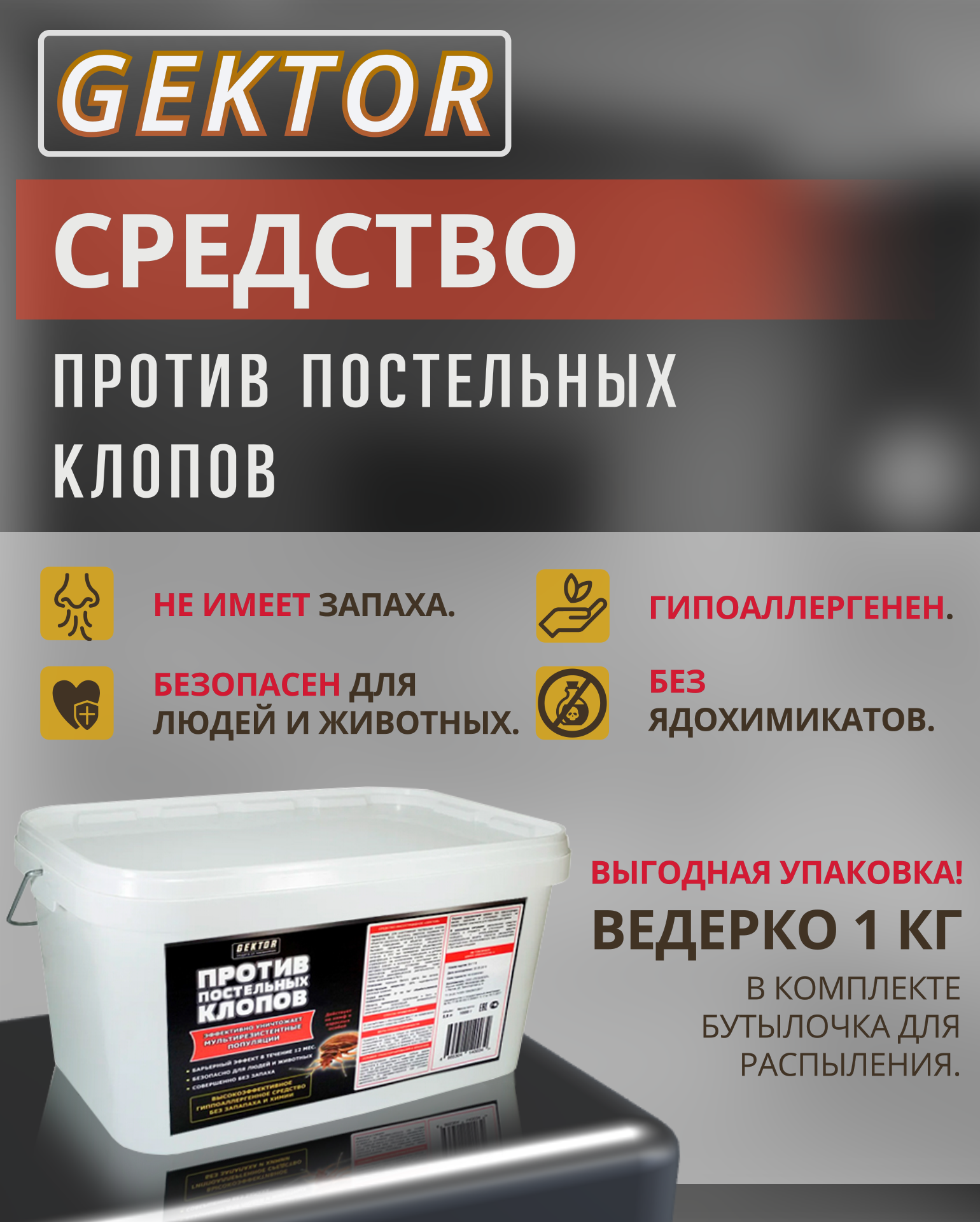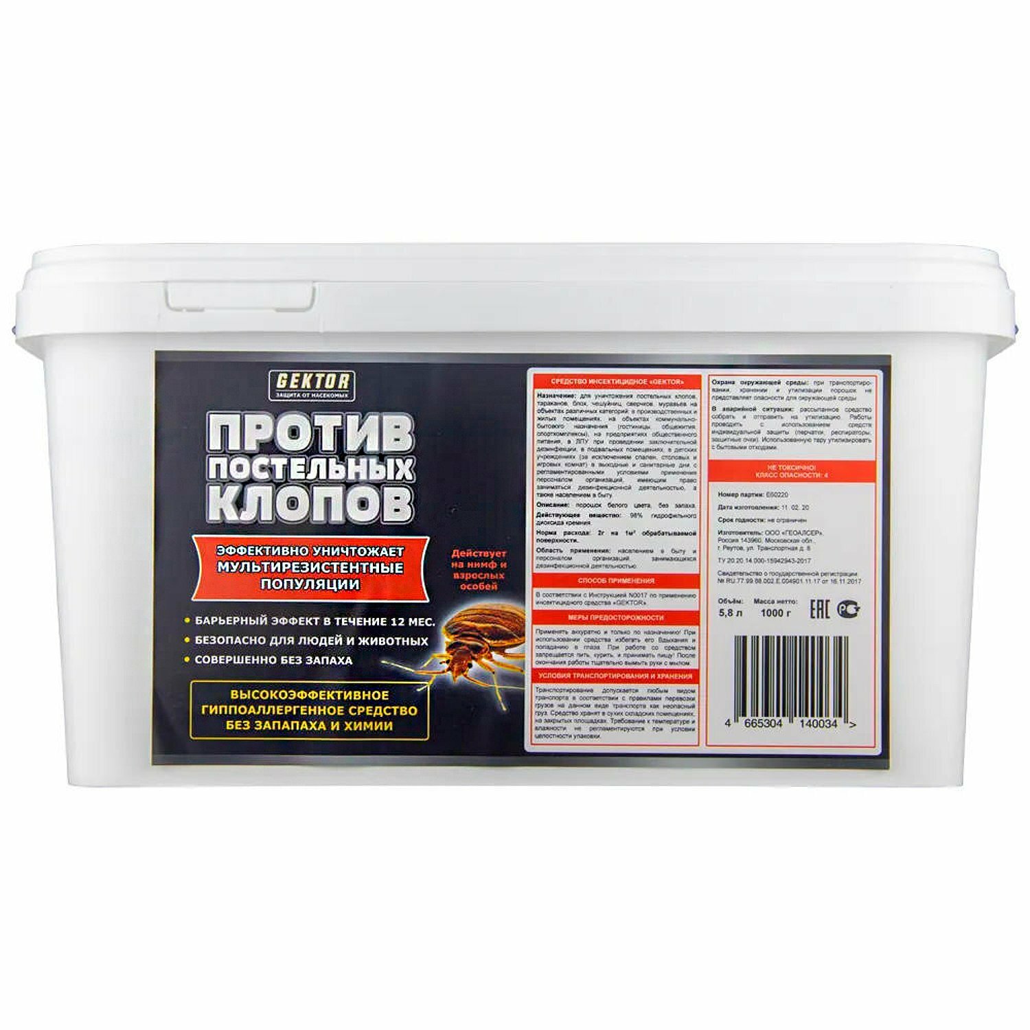 СохранитьПорошок GEKTOR против постельных клопов, 1000 г, 5800 мл интересное: