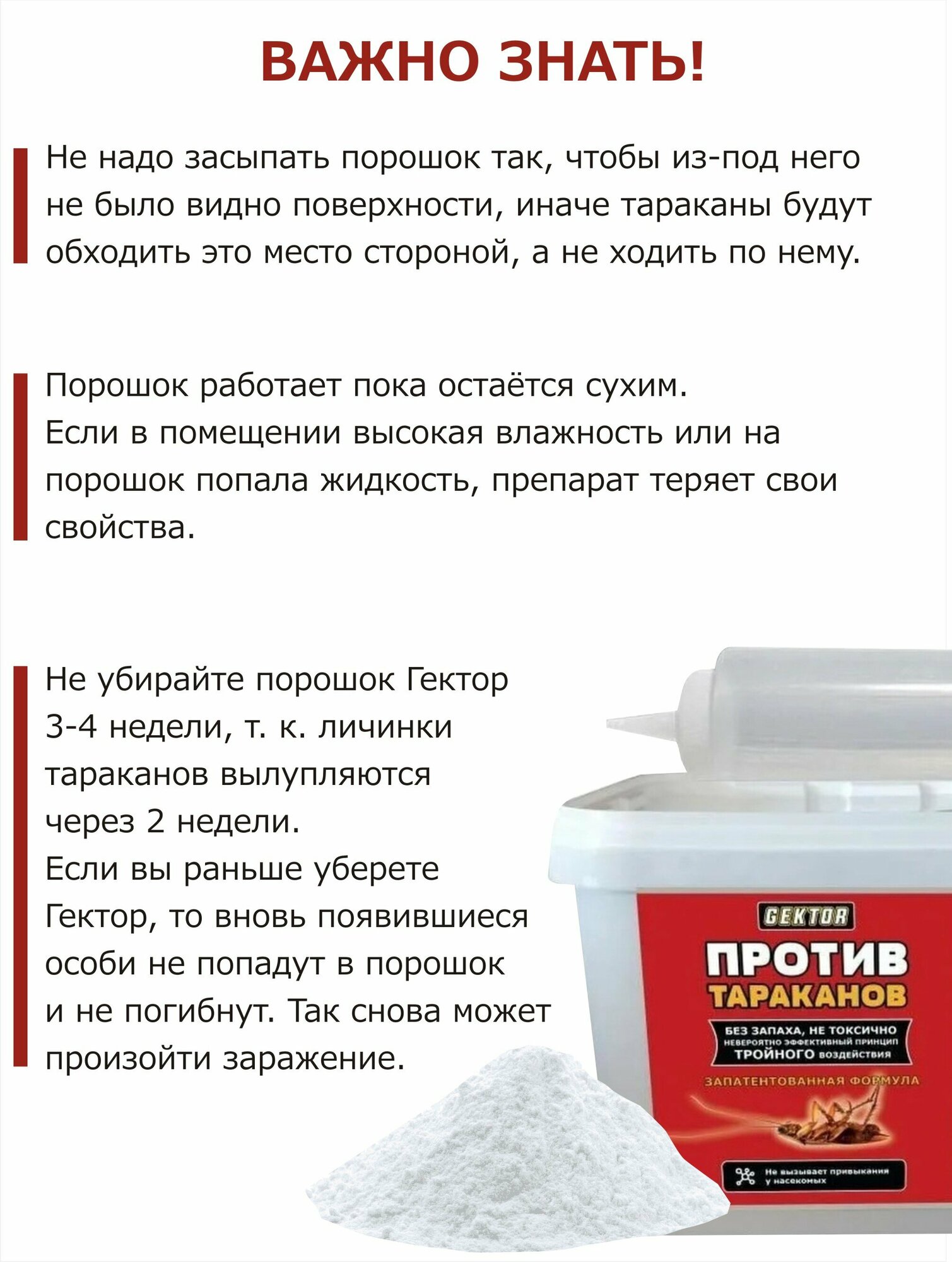 Порошок GEKTOR против тараканов, 110 г, 500 мл