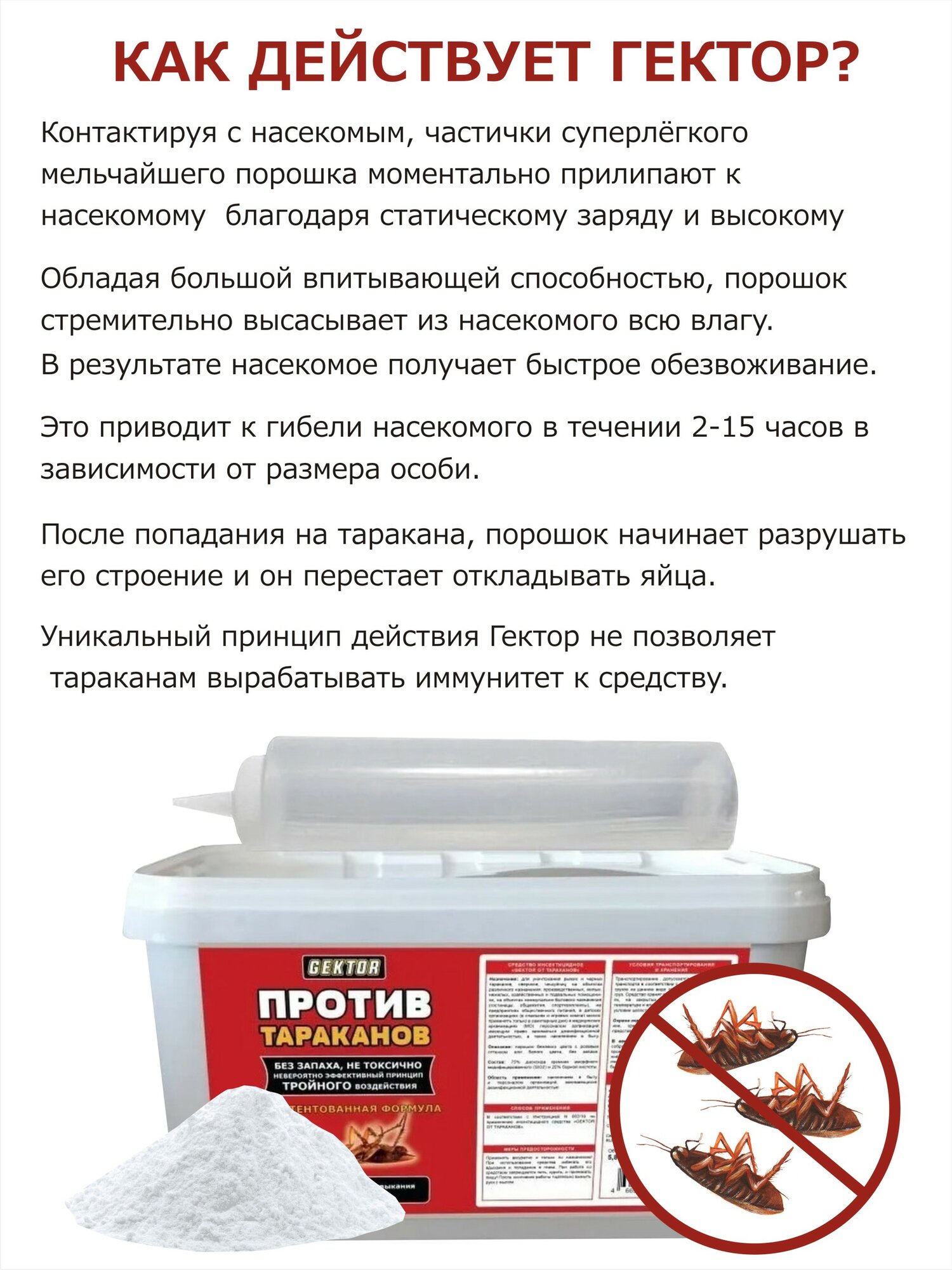Гектор от тараканов 2 флакона по 150 г (500 мл) - эффективное и безопасное средство от тараканов, сверчков и чешуйниц.
