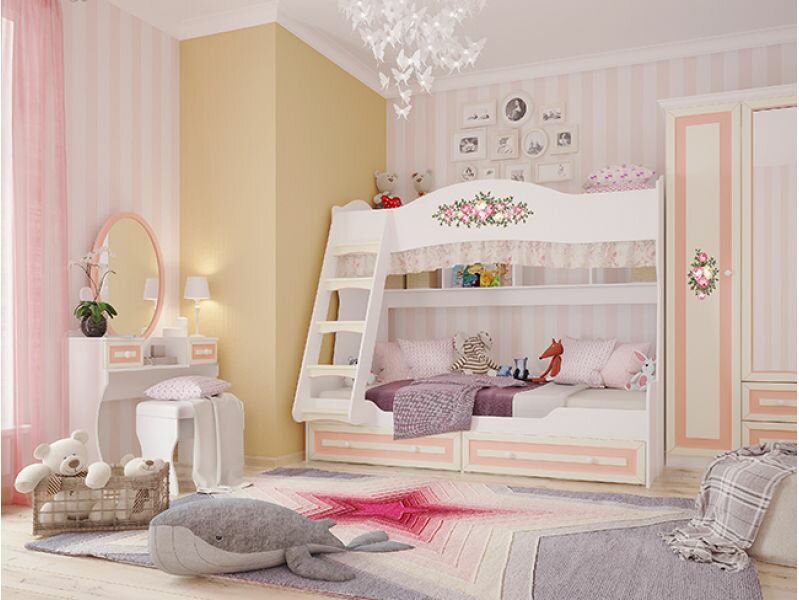 Кровать двухъярусная Алиса Мебельсон белый/крем