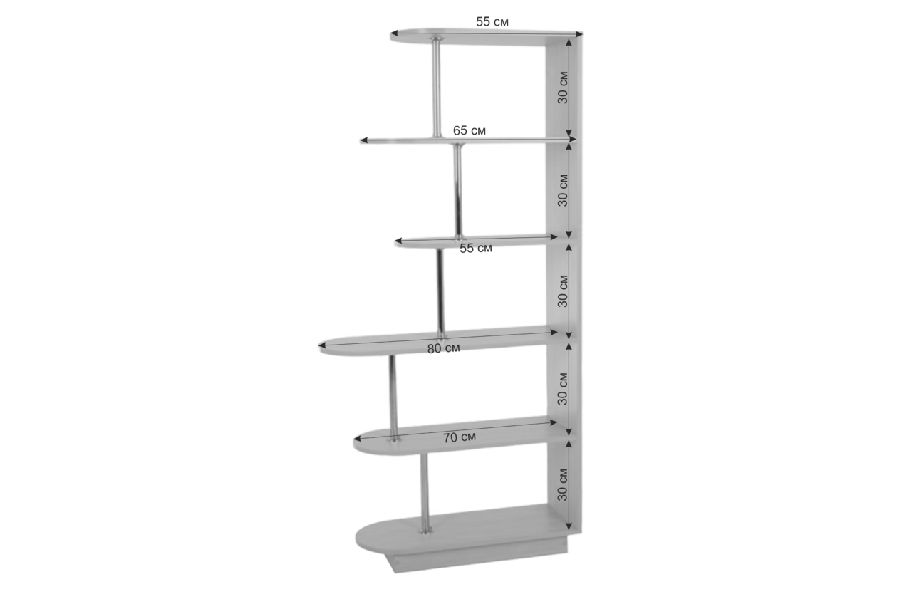 Стеллаж-перегородка Стойка 1, Цвет корпуса: дуб млечный, хром