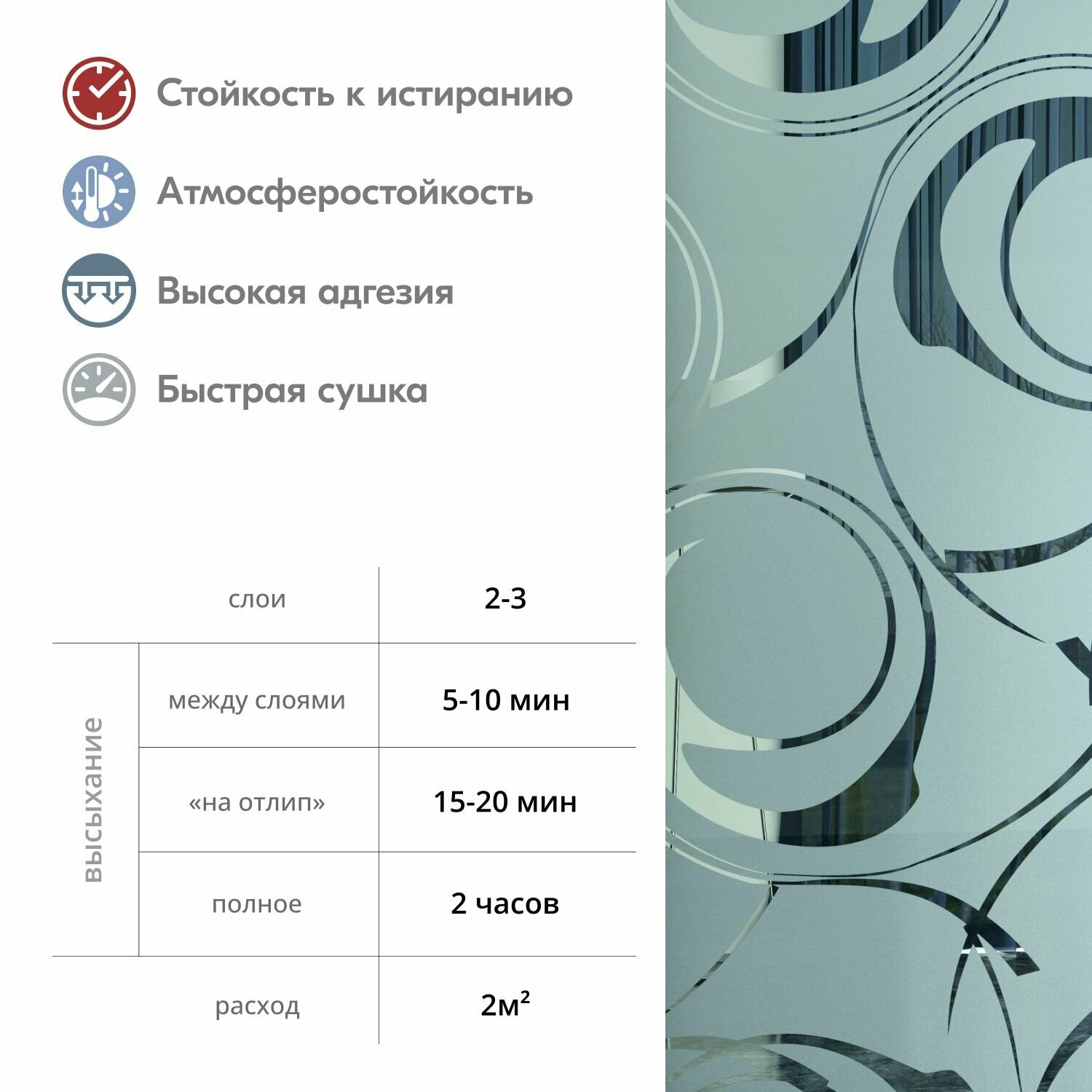 | Плюсы: | Отлично ложится, быстро сохнет. Получается ровная матовая поверхность стекла |