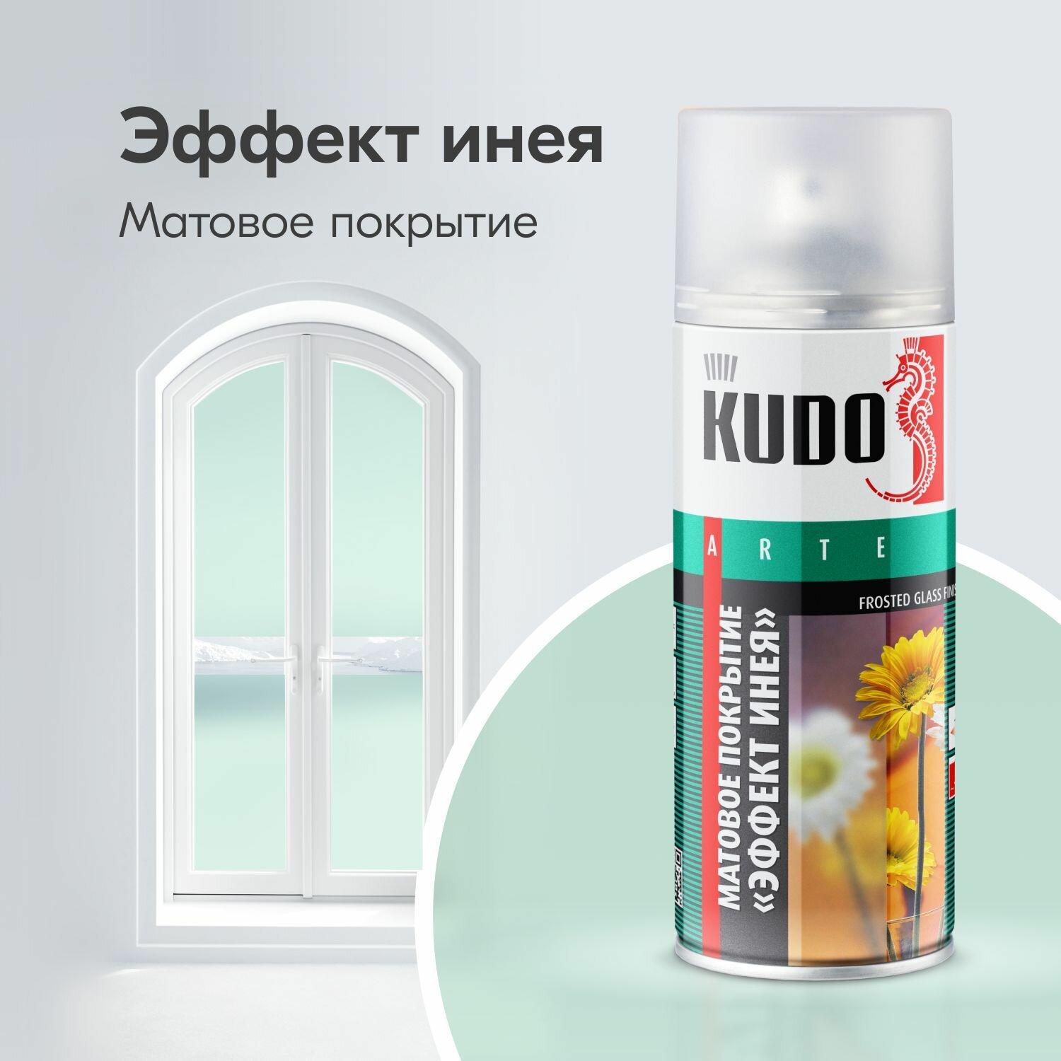 Покрытие для стекла KUDO "Эффект инея", матовый, прозрачный, аэрозоль, 520 мл, упаковка 6 шт.
