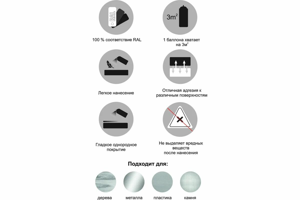 | Плюсы: | Окрашивал металлическую панель 2*0.5 метра, в два слоя, ушло два баллончика, оригинальная окраска скрылась хорошо, при том что была ядерного синего цвета. |