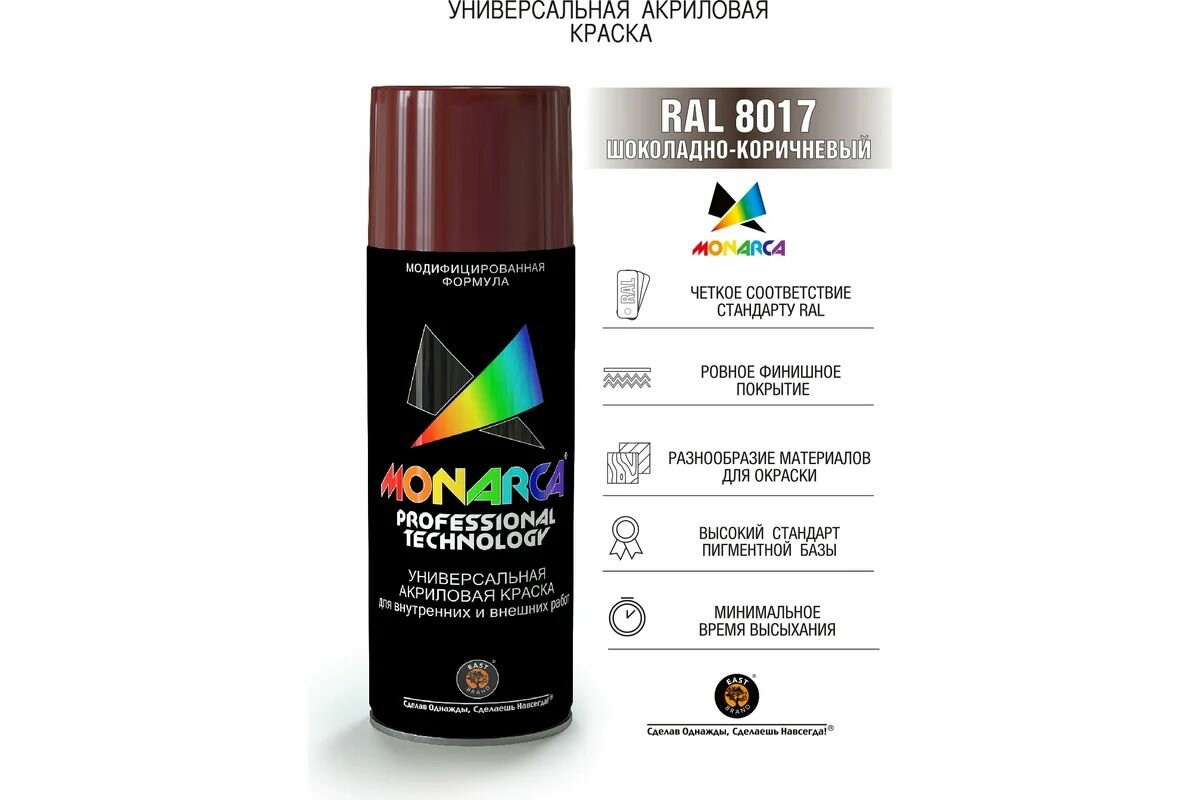 Краска универсальная аэрозольная акриловая Eastbrand Monarca RAL 8017 шоколадно-коричневая 520 мл.