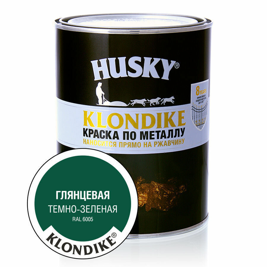 HUSKY KLONDIKE Краска по металлу глянцевая темно-зеленая RAL 6005 0,9л 26166