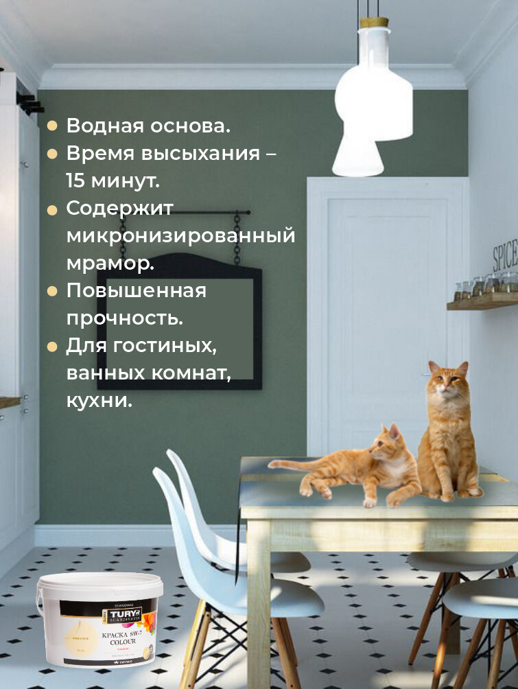 Краска акриловая tury sw-7 colour для стен и потолков моющаяся 0,4кг серая дымка, арт.крвдsw70,4сд