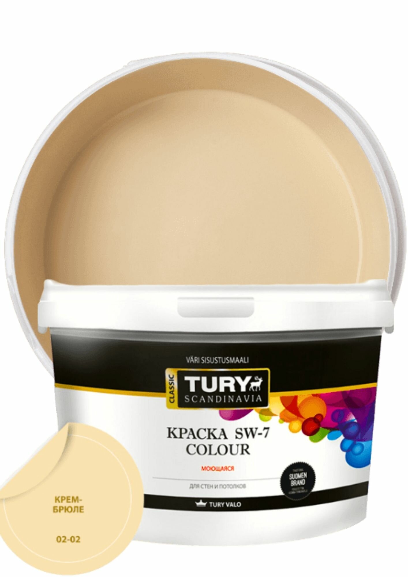 Краска для обоев, стен и потолков TURY SW-7 Colour акриловая моющаяся быстросохнущая матовая, без запаха, цвет Крем-брюле, 2.4 кг