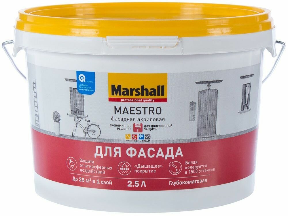 Краска Marshall Maestro для Фасада фасадная акриловая для долговечной защиты 9 л белая