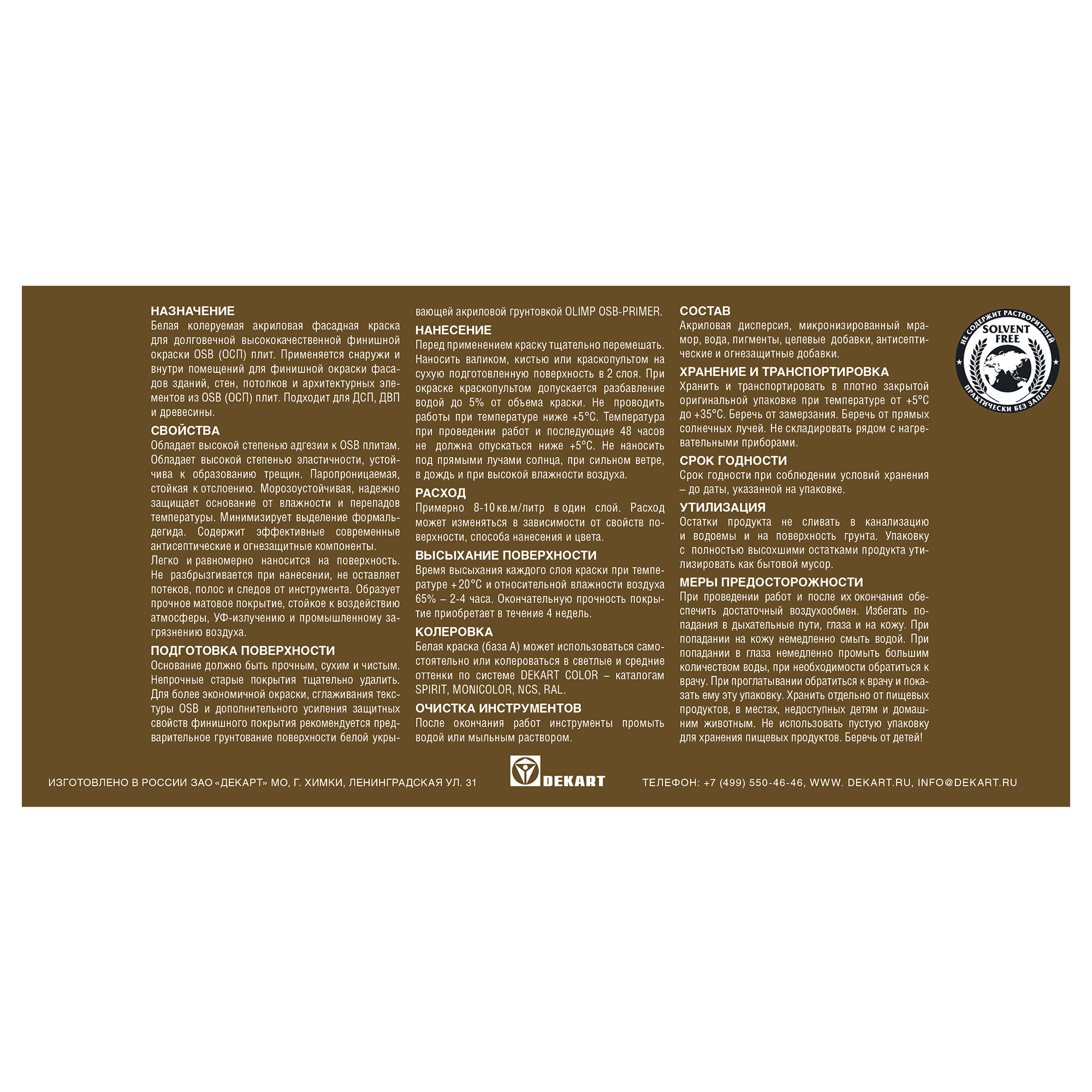 Краска акриловая OLIMP для OSB-плит (9л)
