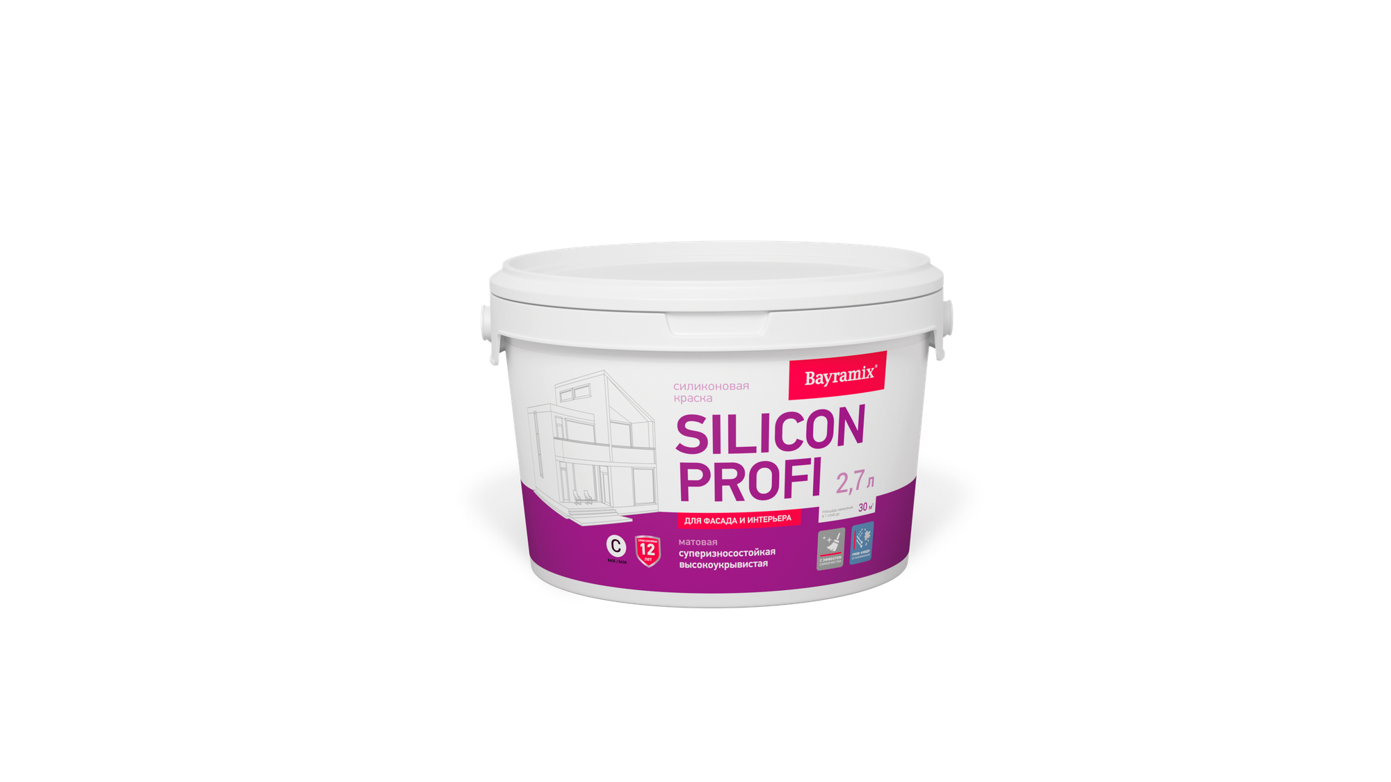 Краска силиконовая для фасадов и интерьеров Bayramix Silicon Profi матовая (2,7л) А (белая и под колеровку)