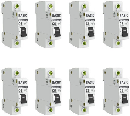 Автоматический выключатель (С) 1P 6А 4,5кА, EKF Basic (комплект 10шт)