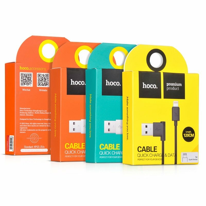 Кабель USB HOCO UPL11 L Shape, USB - Lightning, 2.1А, 1.2 м, черный, L-образный