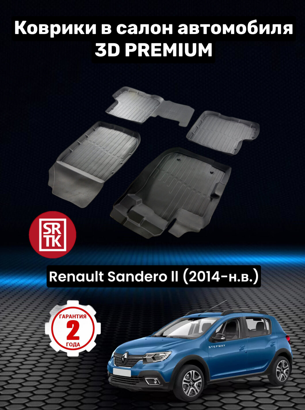 Коврики резиновые для Рено Сандеро 2 (2014-2022)/ Renault Sandero II (2014-2022) 3D PREMIUM SRTK (Саранск) комплект в салон
