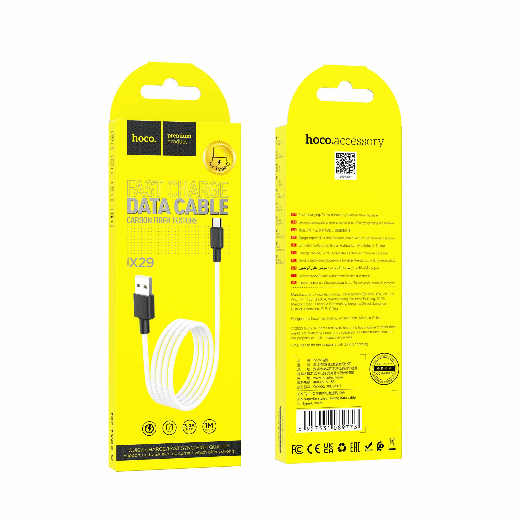 Кабель USB Type-C X29 1M HOCO белый