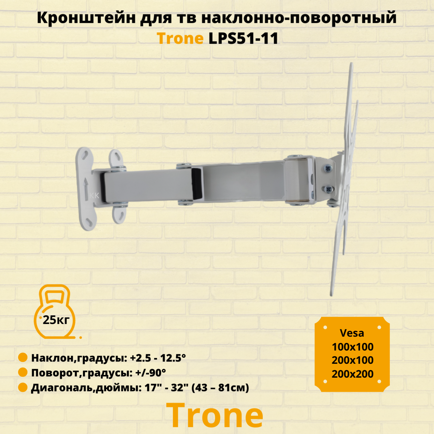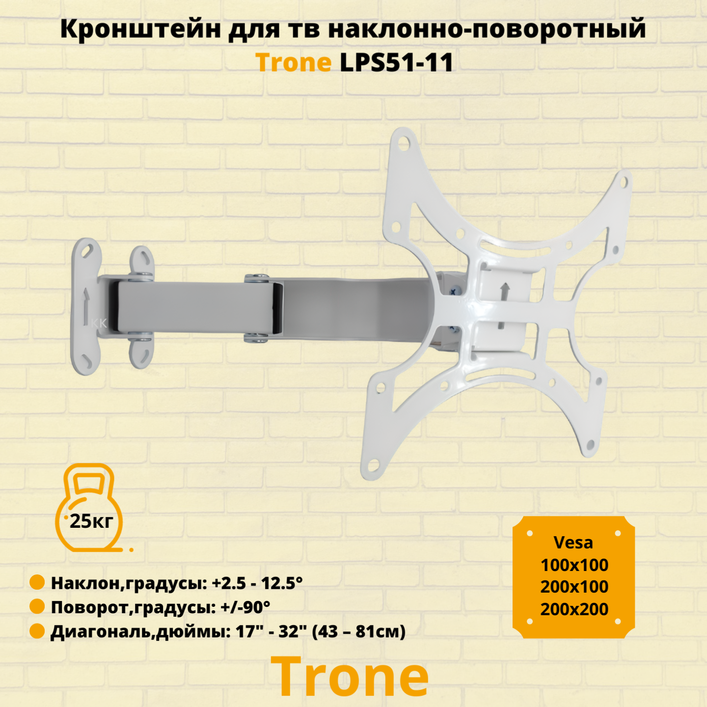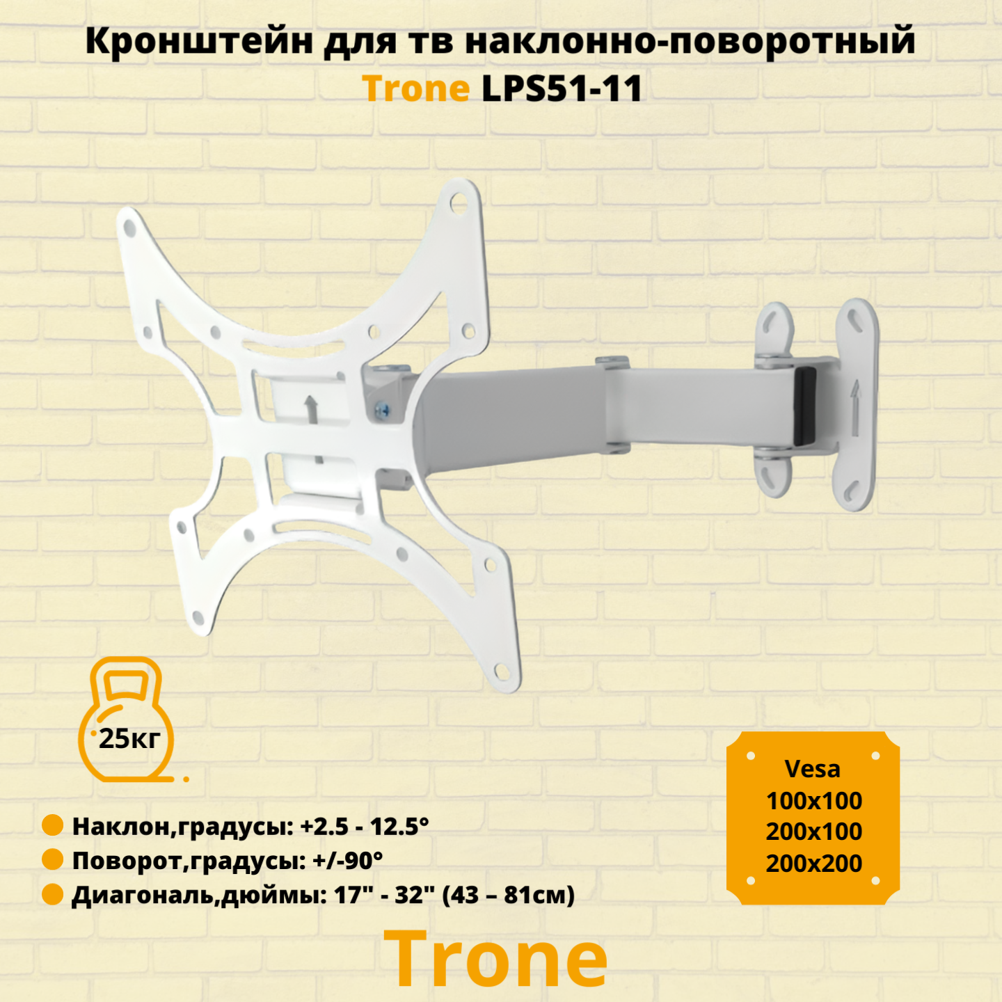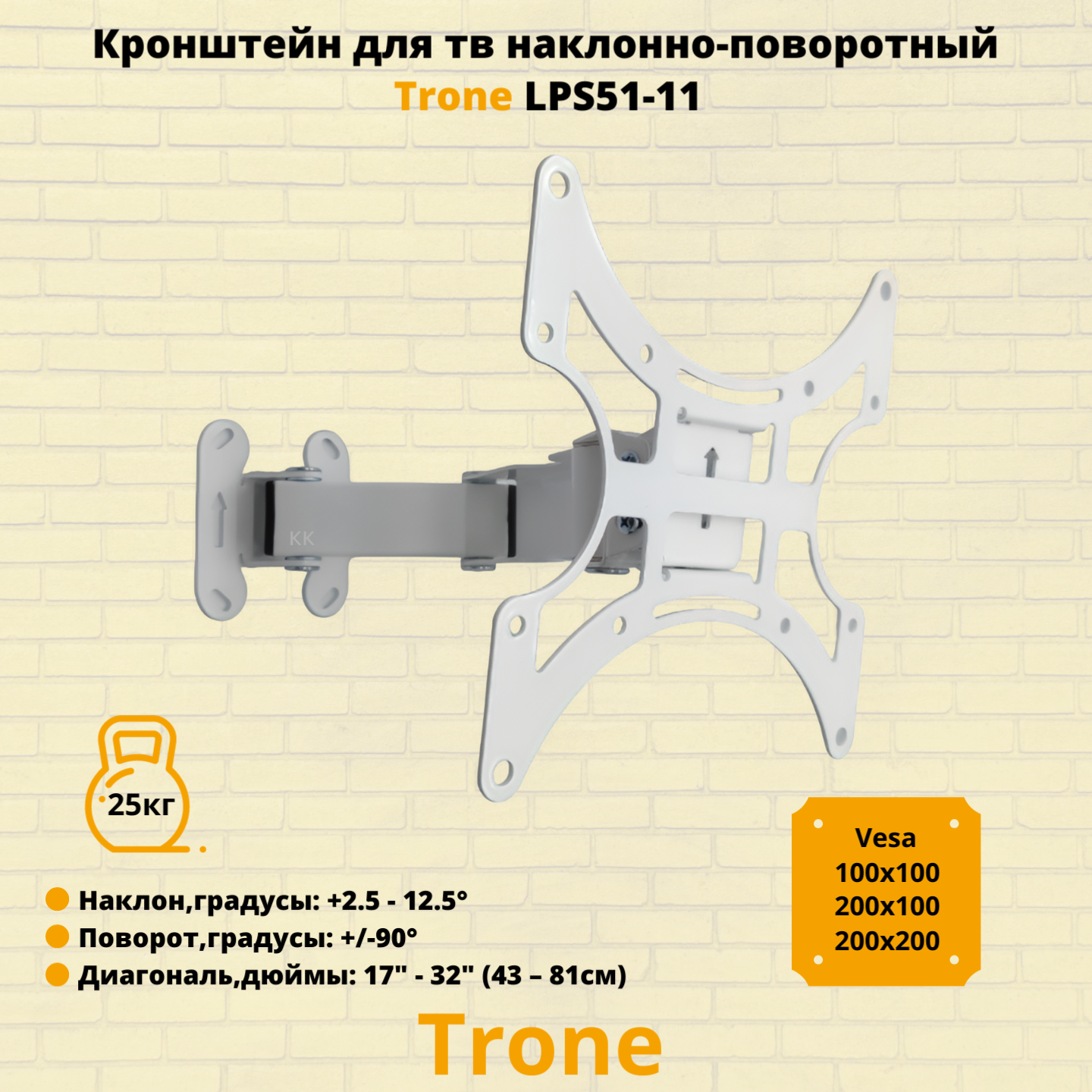 Кронштейн для телевизора на стену наклонно-поворотный с диагональю 17"-32" Trone LPS 51-11,белый