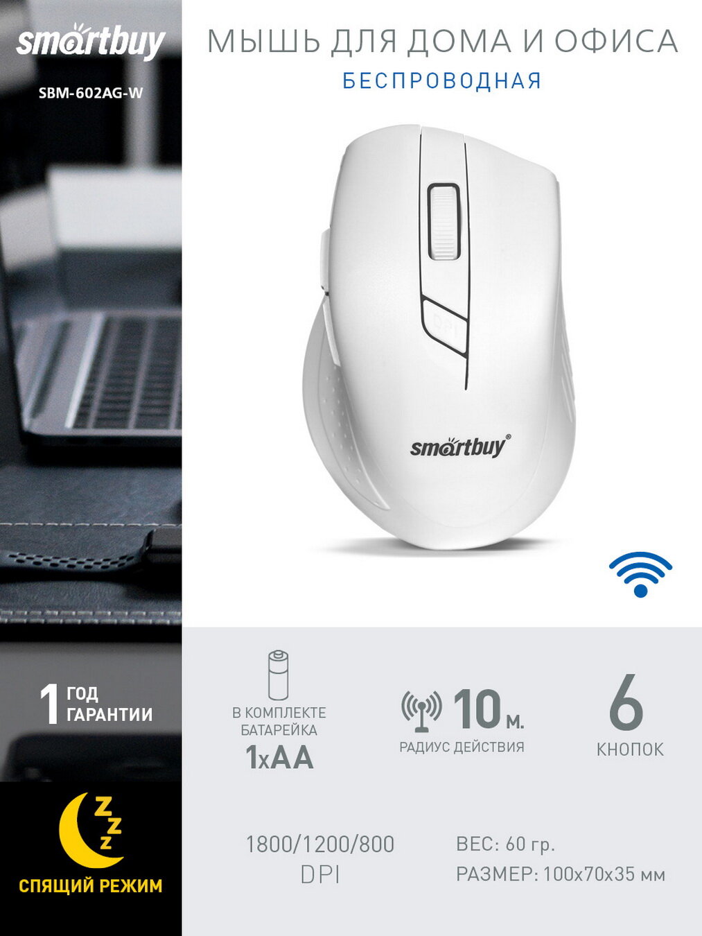 Купить Мышь беспроводная Smartbuy 602AG белая (SBM-602AG-W)