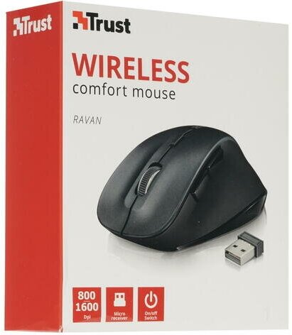 Мышь Trust Wireless Mouse Ravan, USB, 800-1600dpi, Black