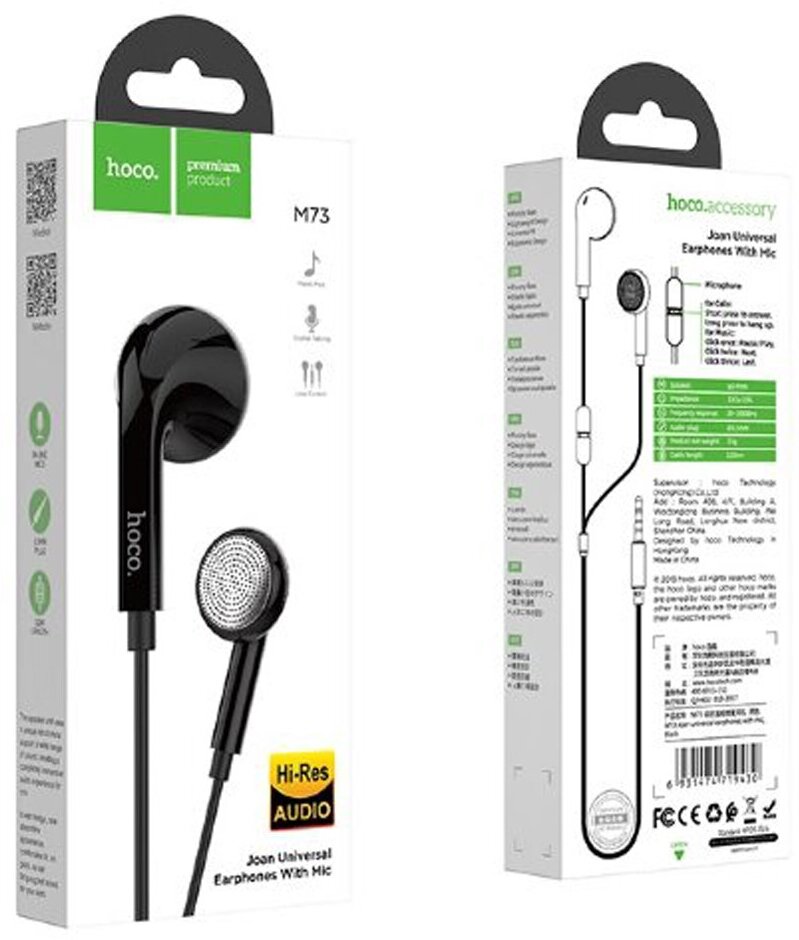 Наушники M73 Joan universal earphones with mic, HOCO, черные