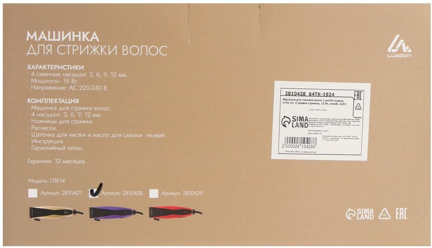 Luazon Home LTRI-14 Машинка для стрижки 2810428 .