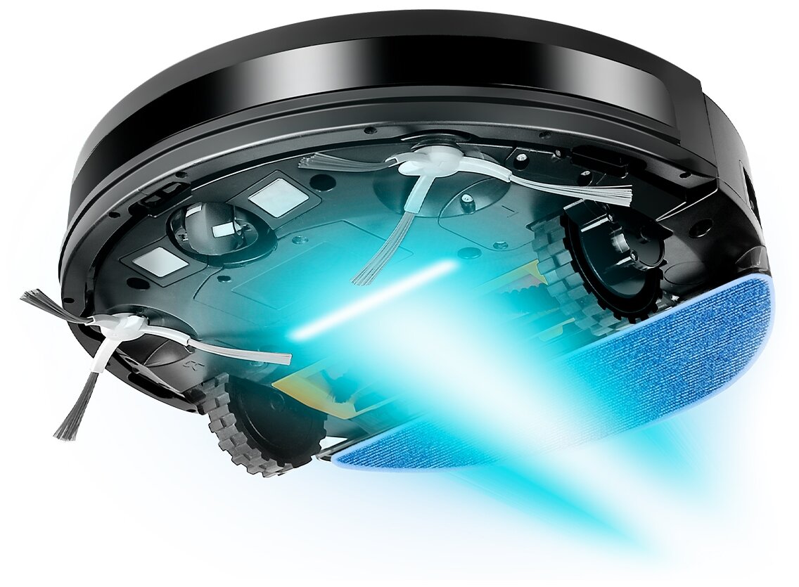 УФ обработка пола, сухая и влажная уборка, управление с пульта и с телефона, хорошая мощность всасывания.