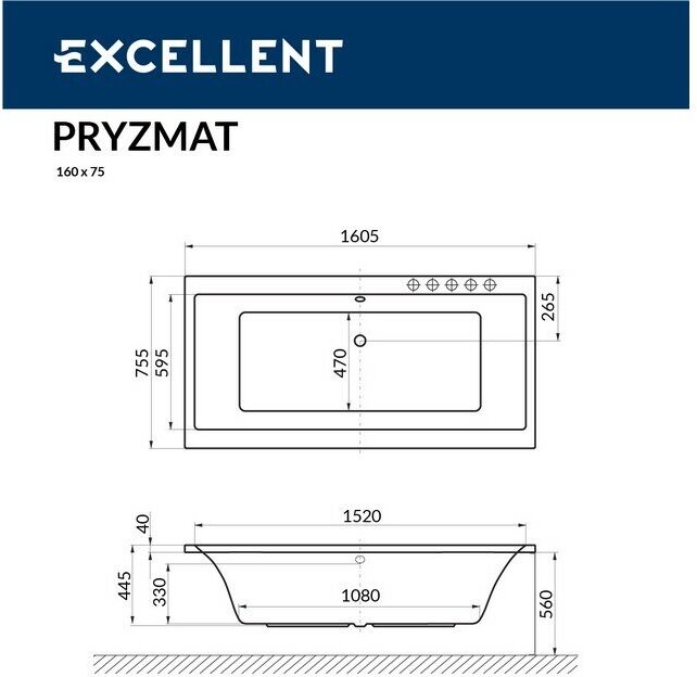 EXCELLENT Акриловая ванна EXCELLENT Pryzmat 160x75 WAEX.PRY16WH