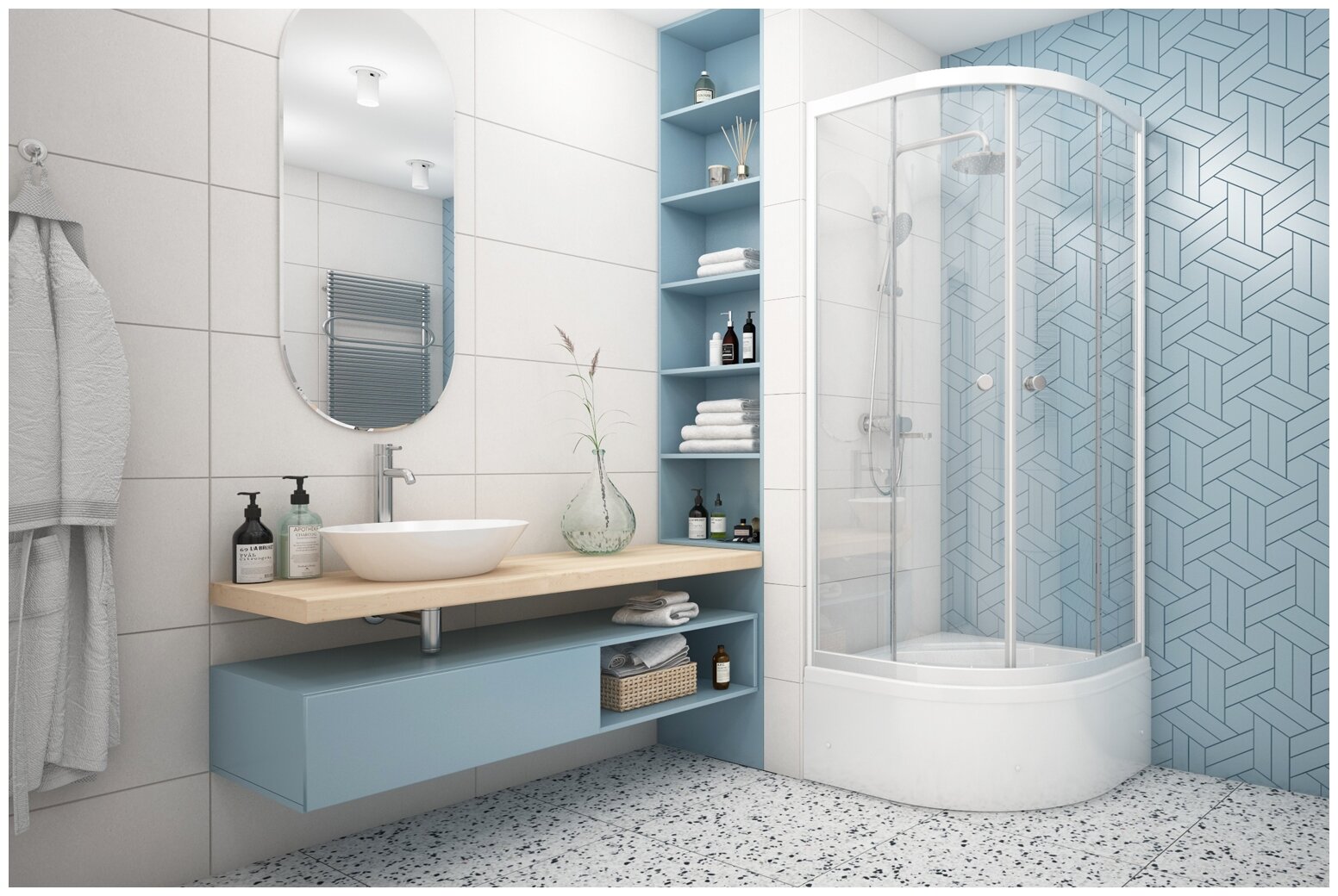 Душевой уголок Метакам Classic белый 79х79х185 см полукруг стекло прозрачное 4 мм (21468)