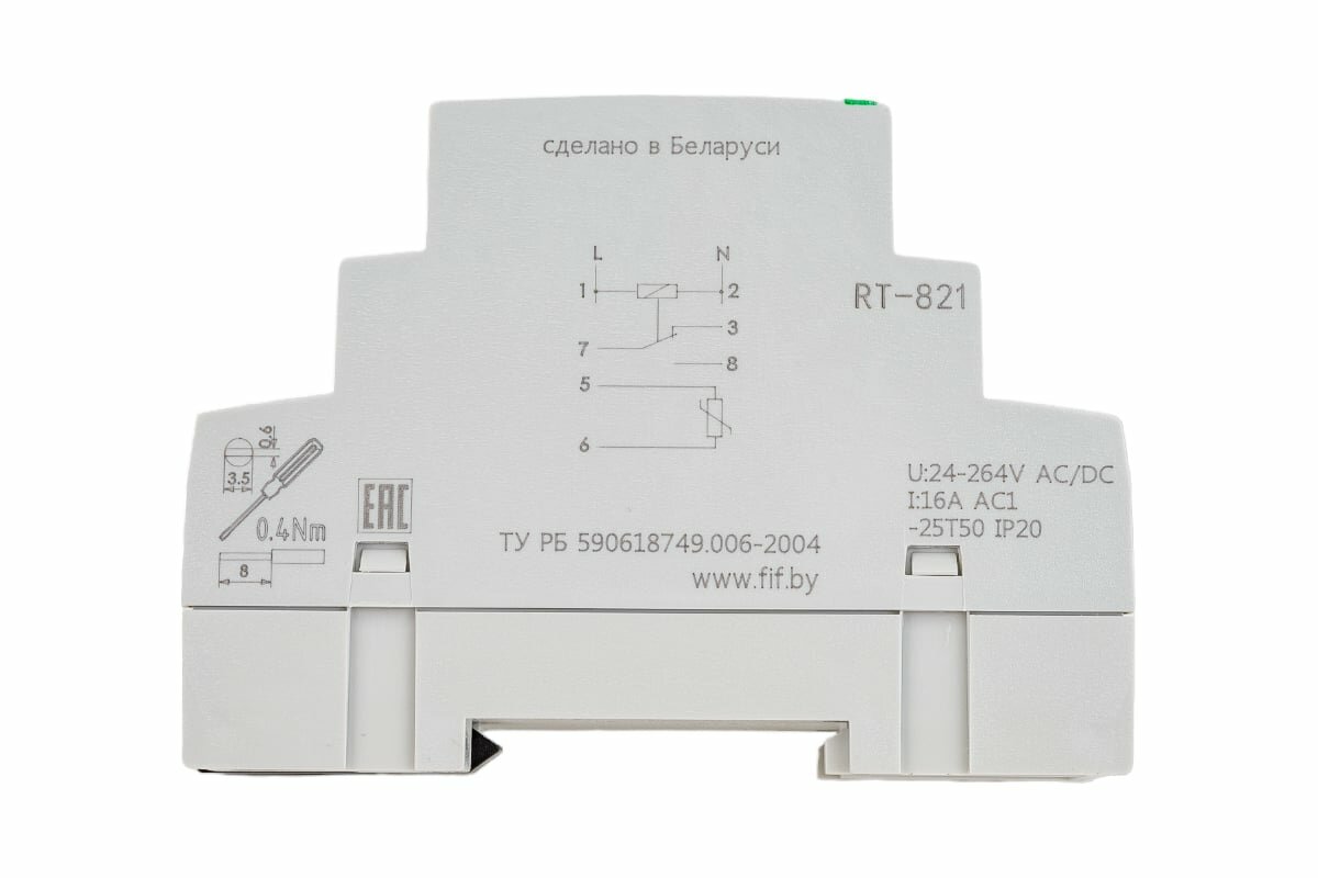 Регулятор температуры F&f RT-821 напряжение питания 50-264 В АС/DC, диапазон от -4 до +5 гр., контакт 1NO/NC, максимальный ток 16 А., EA07.001.003