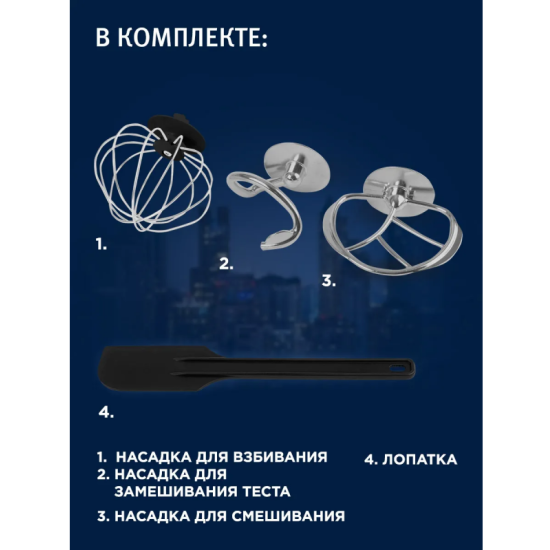 | Плюсы: | Качественный планетарный миксер, все необходимые насадки в комплекте |