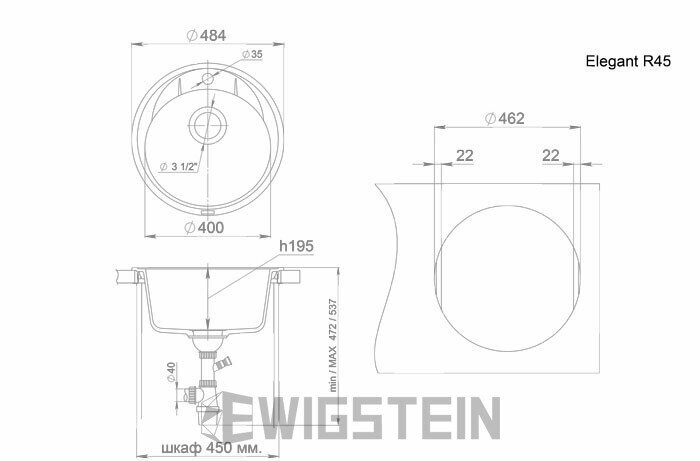 Мойка EWIGSTEIN Elegant R45 1чаша D=484 (топаз)