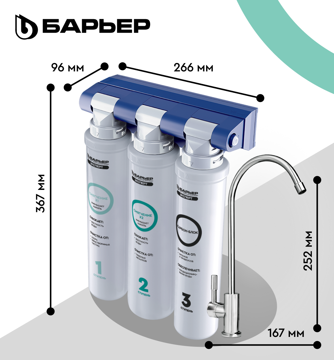 Фильтр под мойку для очистки воды трехступенчатый, быстросъемный барьер эксперт Жесткость х2, двойная защита от накипи