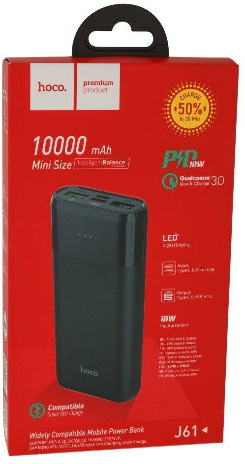 Универсальный Доп. Аккумулятор 10000mAh, J61, PD 18W+QC3.0, Hoco, черный интересное: