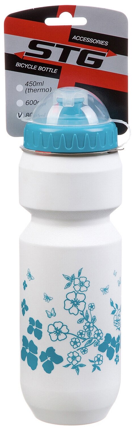 Велофляга STG с голубым рисунком с крышкой 800 мл CSB-532L Х88769 white