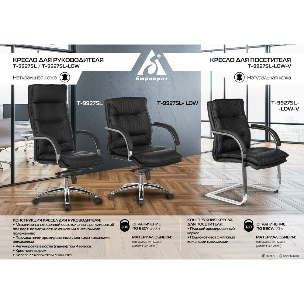 Кресло Бюрократ T-9927SL руководителя, цвет черный, кожа, крестовина металл хром