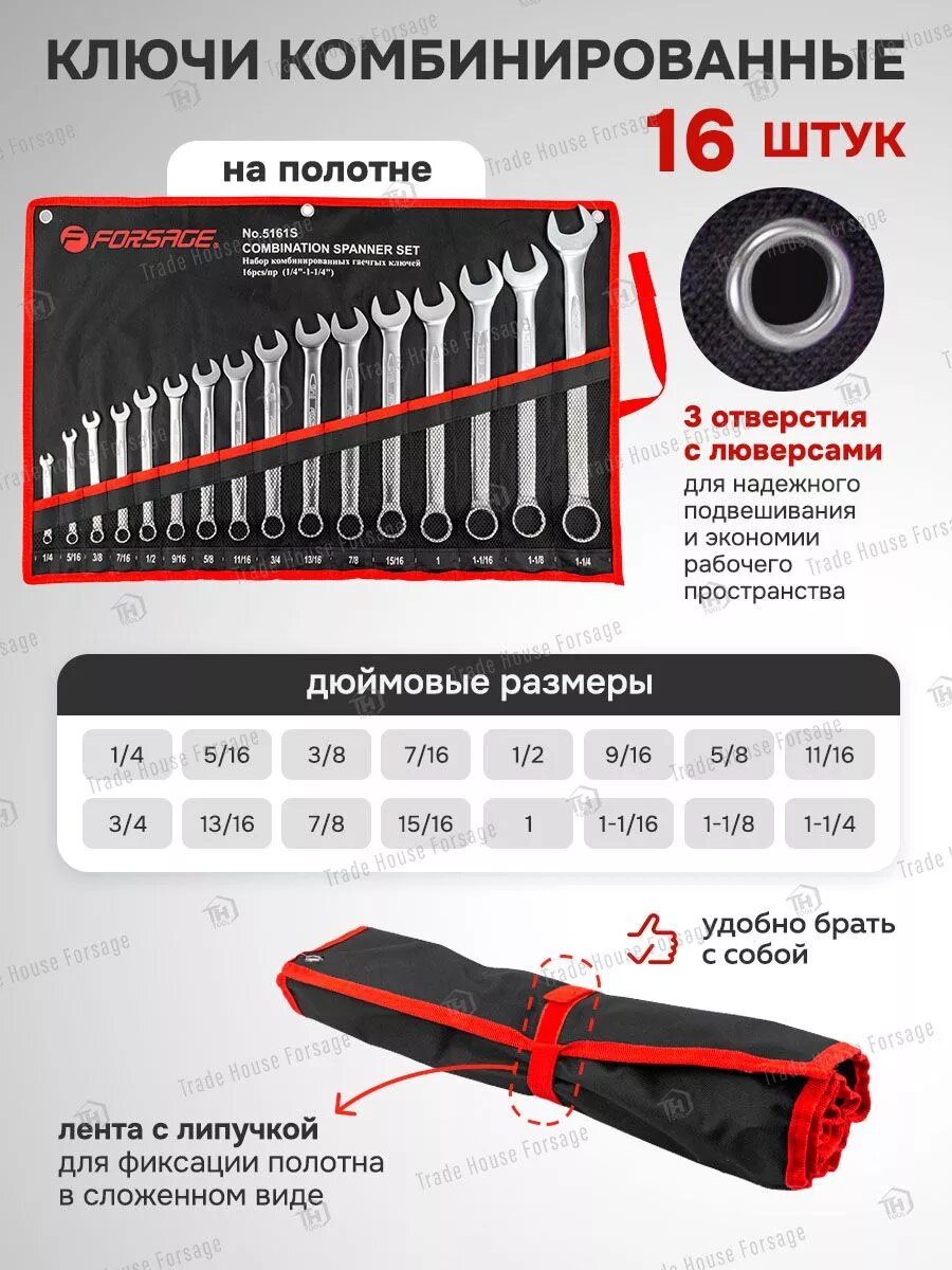 Forsage Набор ключей комбинированных дюймовых 16пр. 47360 F-5161s интересное: