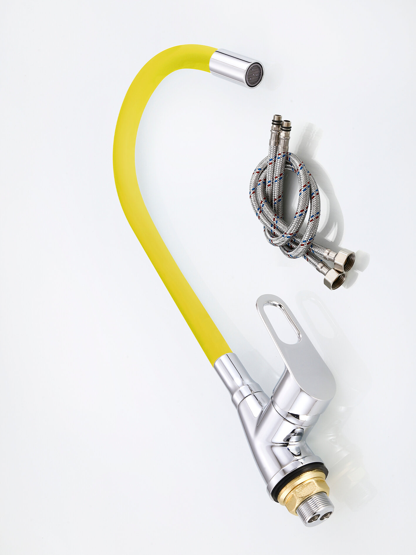 Смеситель для кухни с гибким изливом HANSEN H59004V Хром/Желтый