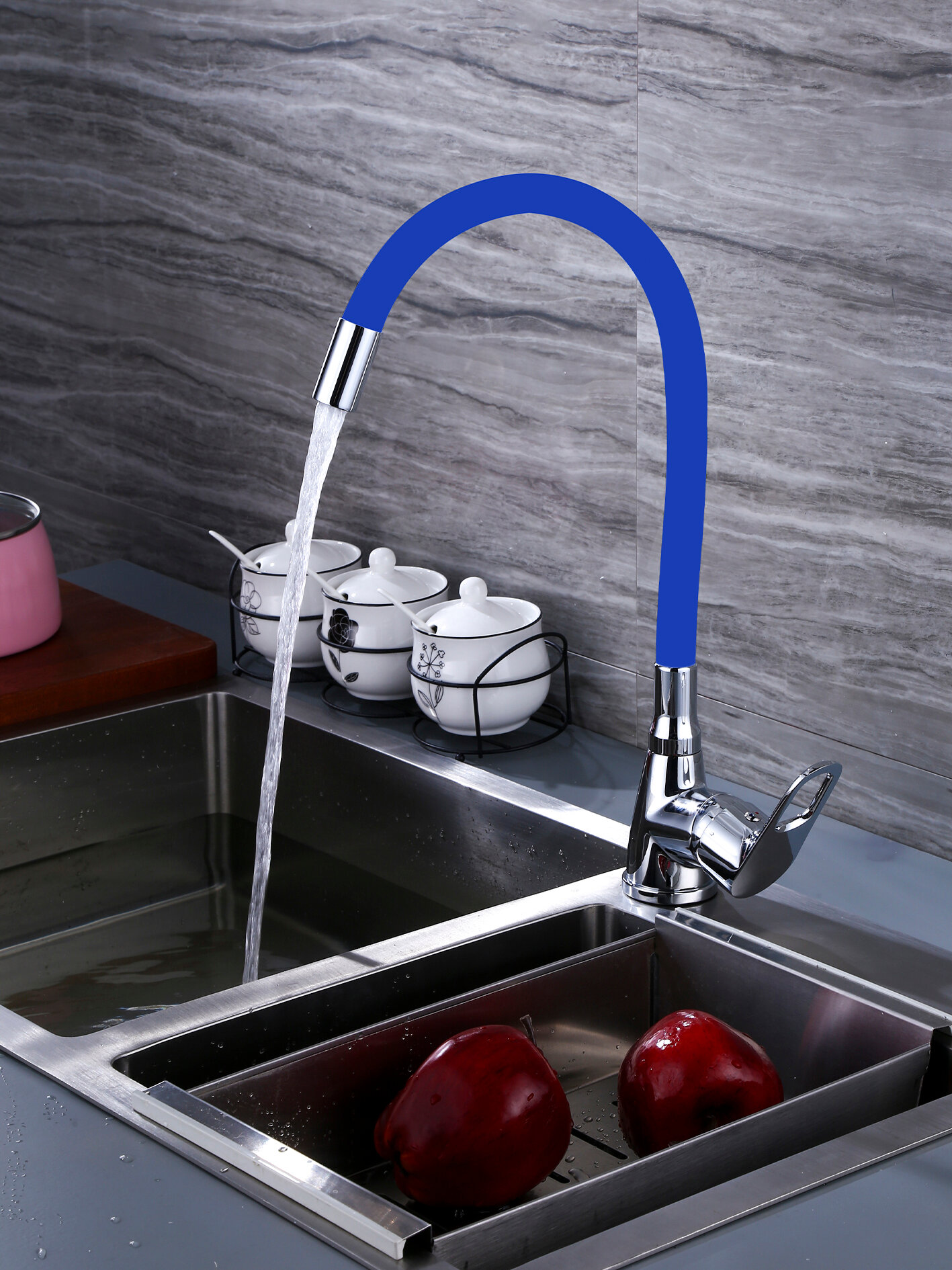 Смеситель для кухни с гибким синим изливом Hansen 59004R синий/хром