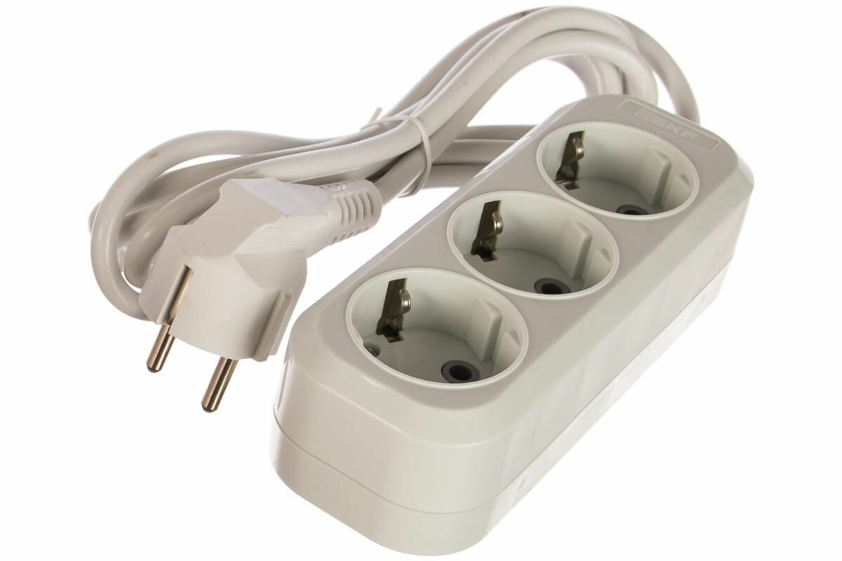 Удлинитель бытовой с заземлением, 3 розетки, 2 метра, Эксперт (16А-3,5кВт, ПВС)
