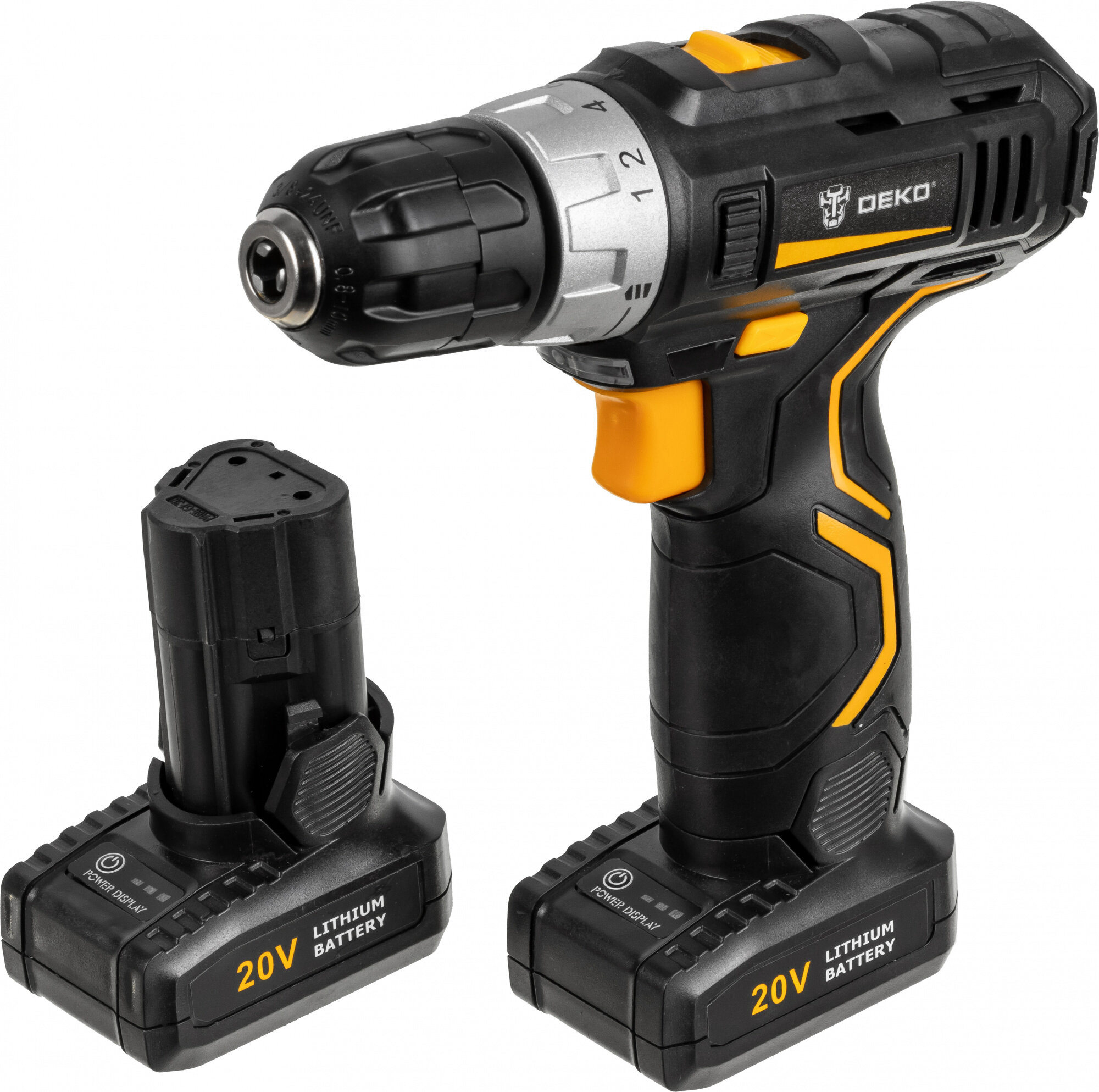 Аккумуляторная дрель-шуруповерт Deko GCD20DU3 в коробке, 1*2 А·ч, черно-желтый