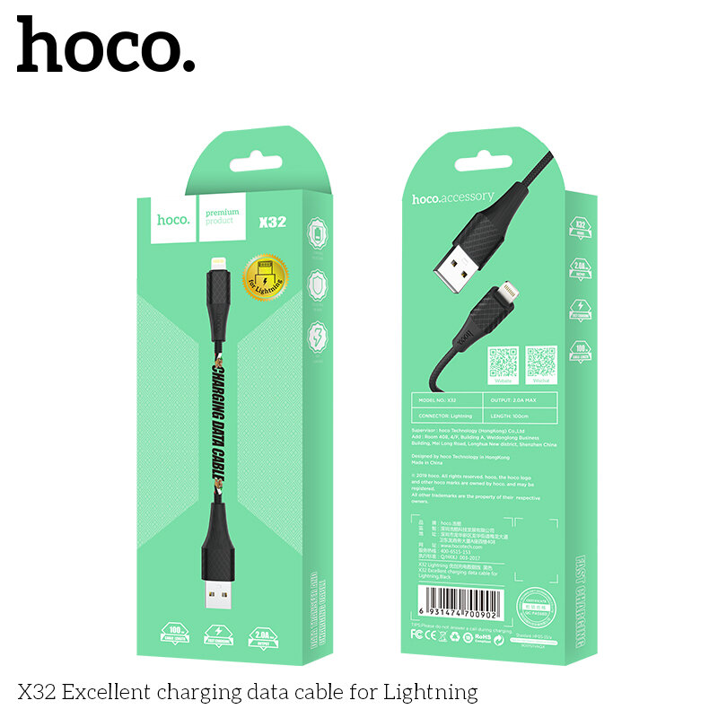 Кабель USB HOCO X32 Excellent, USB - Lightning, 2А, 1 м, черный, Быстрая зарядка