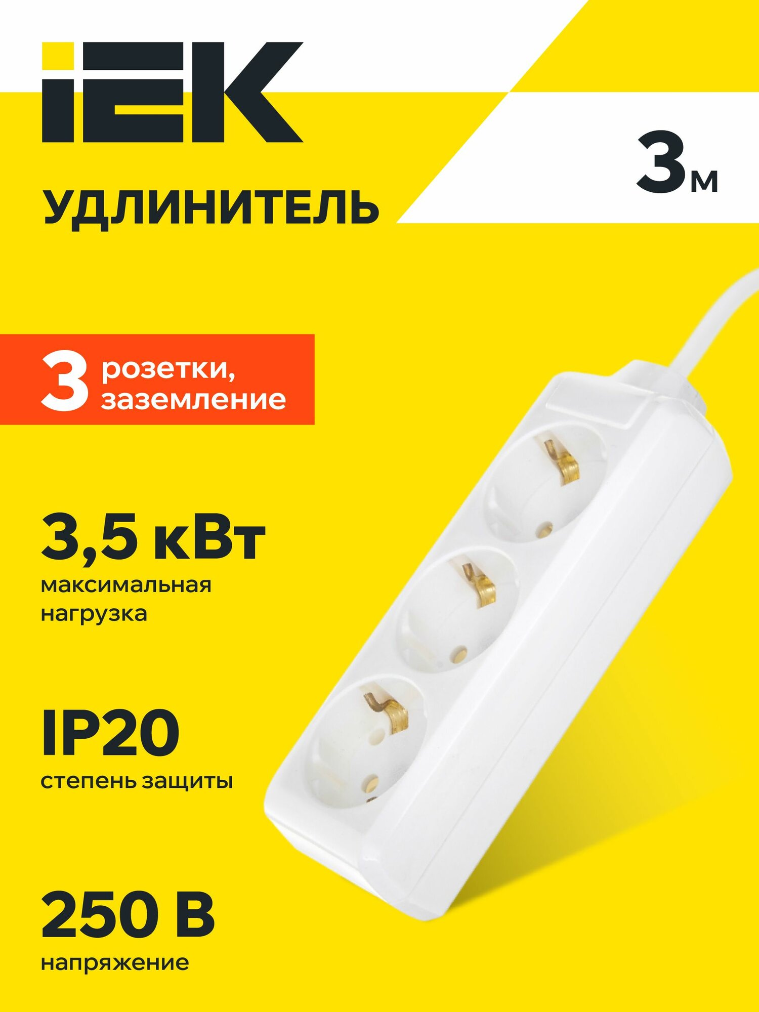 Удлинитель IEK У03 3 места 2P+PE/3метра 3х1мм2 16А/250