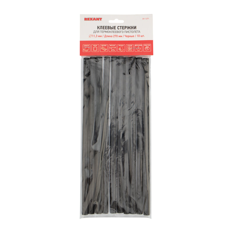 Стержни клеевые Ø11мм, 270мм, черные (10 шт/уп), хедер REXANT 1 упак арт. 09-1271