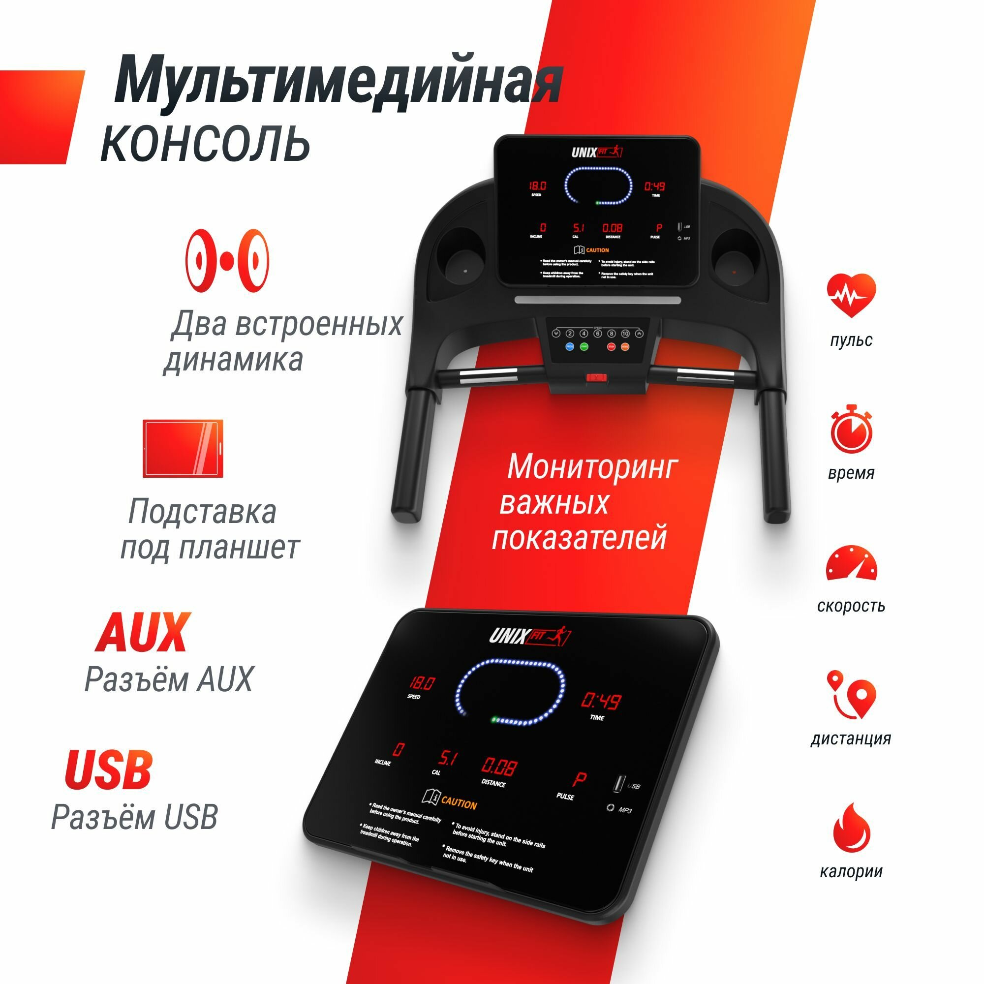 Беговая дорожка UNIX Fit Hi-tech F2 Dark Storm, коврик в комплекте