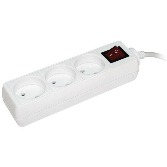 Удлинитель с выключателем IEK У04К-выкл, ПВС 3 x 1 мм², с заземлением, 4 розетки, 3 м, белый