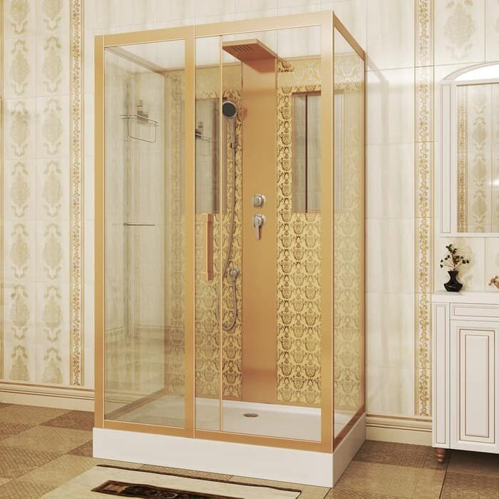 Душевая кабина NG-7711GBK (900x1200х2100) низкий поддон стенки золото без крыши