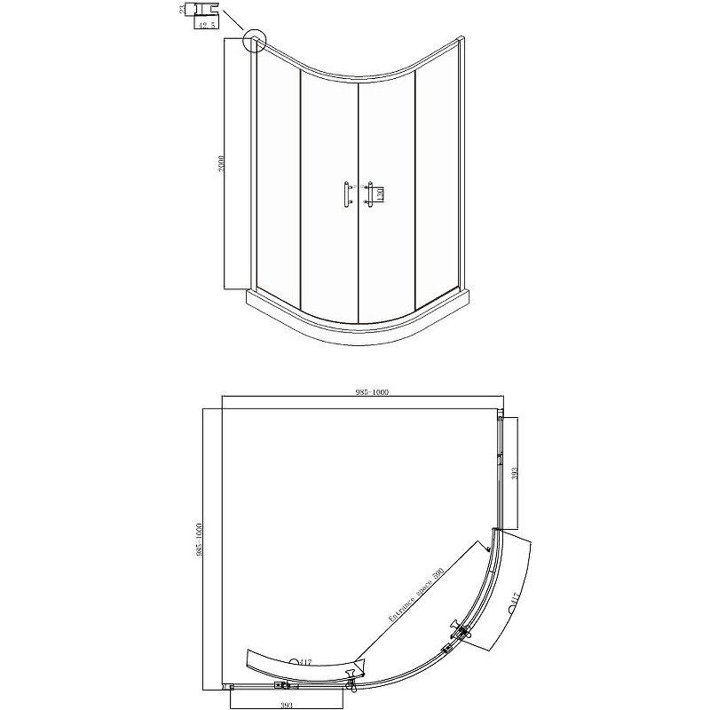 Душевой уголок Ambassador Kingston 14011104, полукруглый, 90х90 см