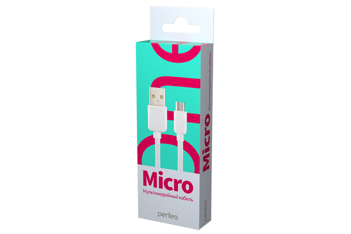 Кабель PERFEO USB2.0 A вилка - Micro USB вилка, белый, длина 1 м., бокс (U4007)