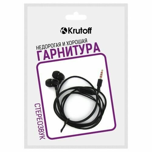 Наушники Krutoff HF-Z67, вакуумные, микрофон, 106 дБ, 16 Ом, 1 м, черные